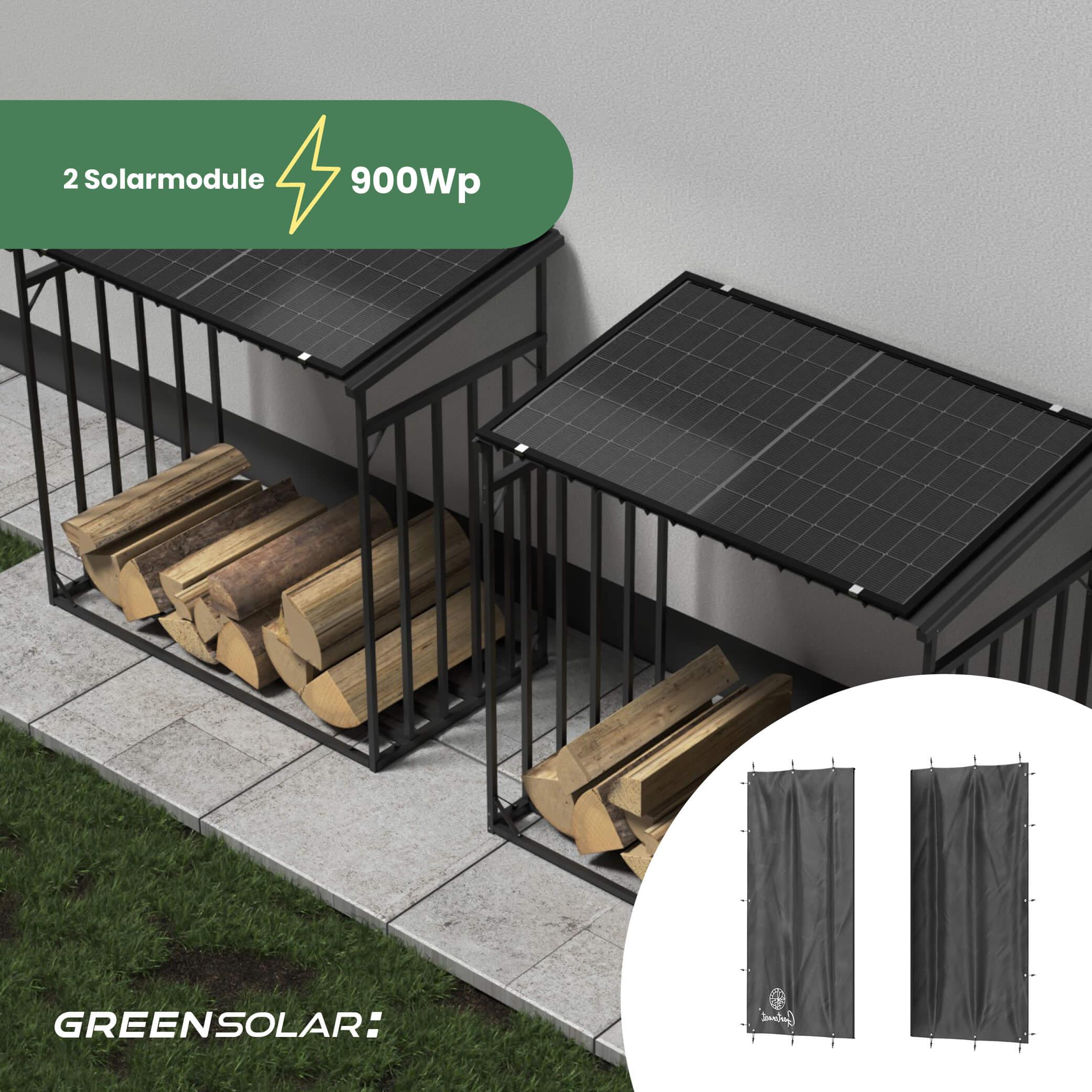 Kaminholzregal mit Balkonkraftwerk 900/800 black inkl. Plane