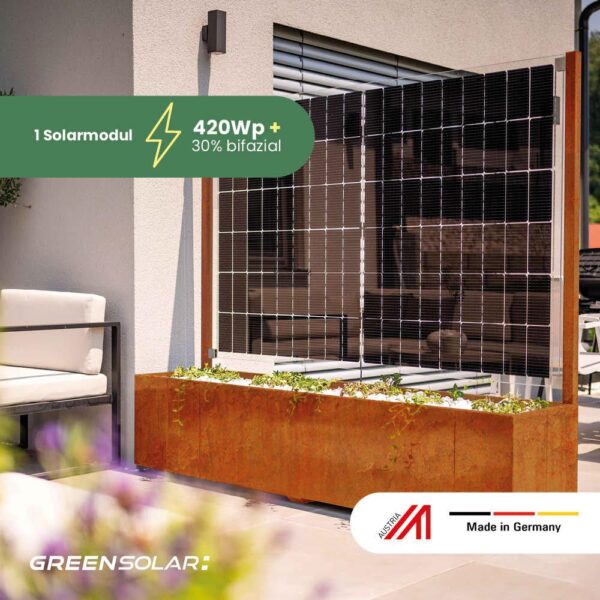- 1x Solarmodul 420Wp Glas bifazial